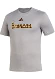 Stay cool and display your Western Michigan Broncos spirit in this Grey Broncos Script T Shirt. This Short Sleeve is the perfect Tee for working out, heading to class, or cheering on the Broncos. Showcasing a screen print team graphic on front chest, there's no mistaking your Western Michigan Broncos pride in this Broncos Broncos Script T Shirt!