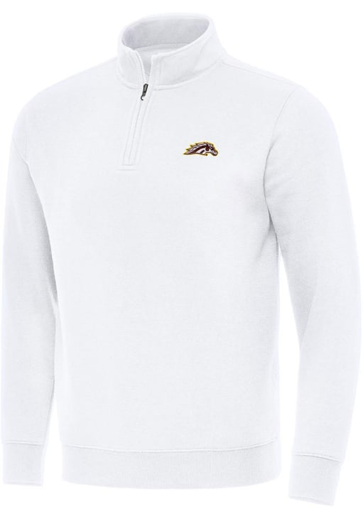 Embrace the warmth and showcase your Broncos pride with our Western Michigan Broncos Long Sleeve Qtr Zip Pullover. This Mens White Victory Long Sleeve Pullover offers a brushed back fleece material for the perfect combination of comfort and style. Elevate your everyday look with this must-have Western Michigan Broncos Long Sleeve Qtr Zip Pullover.