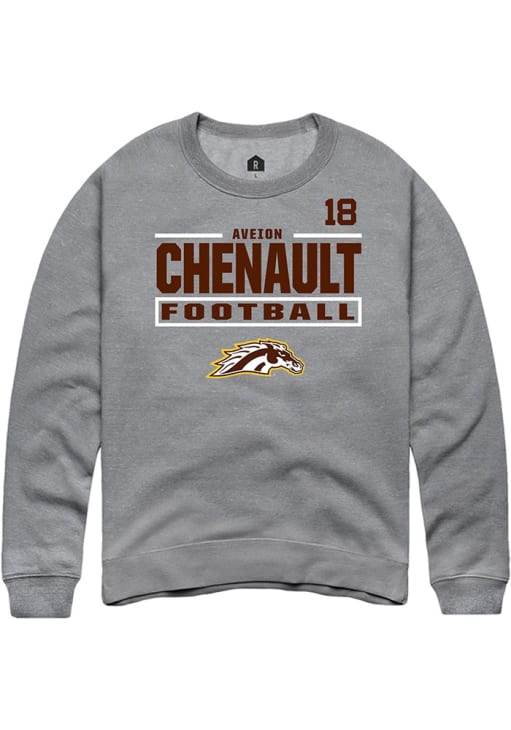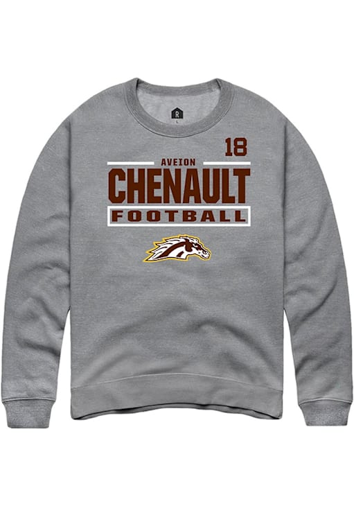 Support your Western Michigan Broncos and favorite Aveion Chenault in this Western Michigan Broncos Mens Grey Football NIL Stacked Box Player Crew. This Crew Sweatshirt features a NIL graphic, and is sure to stand out in the stadium. Perfect to wear on game day or any day!