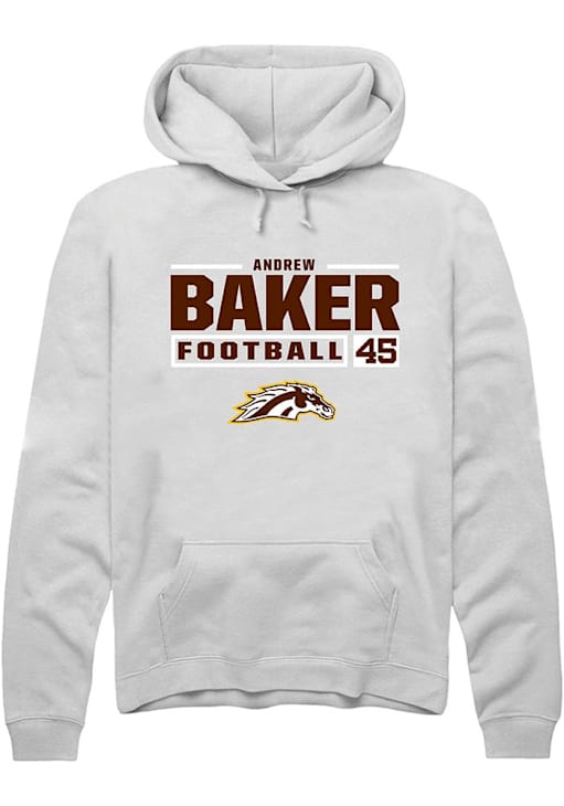 Andrew Baker Rally Mens White Western Michigan Broncos Football NIL Stacked Box Hooded Sweatshirt