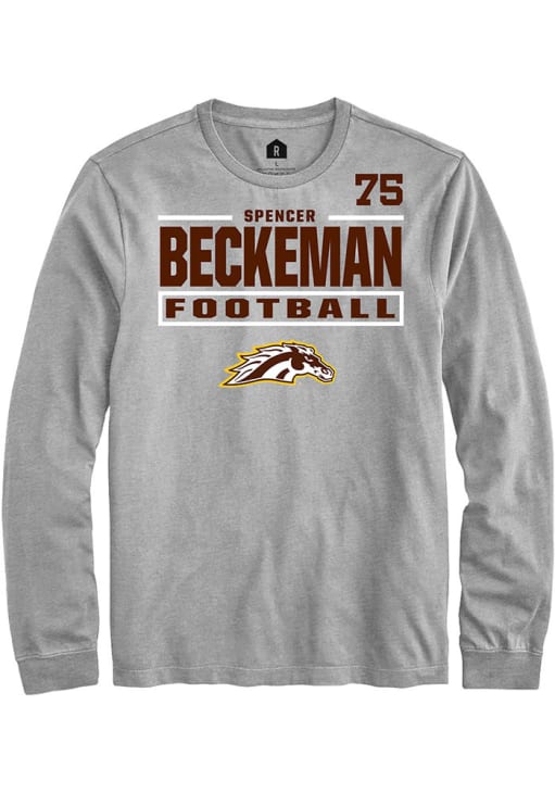 Embrace the spirit of your favorite player in this Western Michigan Broncos Grey Football NIL Stacked Box Spencer Beckeman Long Sleeve Player Tee! This Player T Shirt features a NIL graphic, so everyone will know you cheer for WMU Broncos, Spencer Beckeman! This is the perfect Broncos Player Tee for game days. Go Broncos!