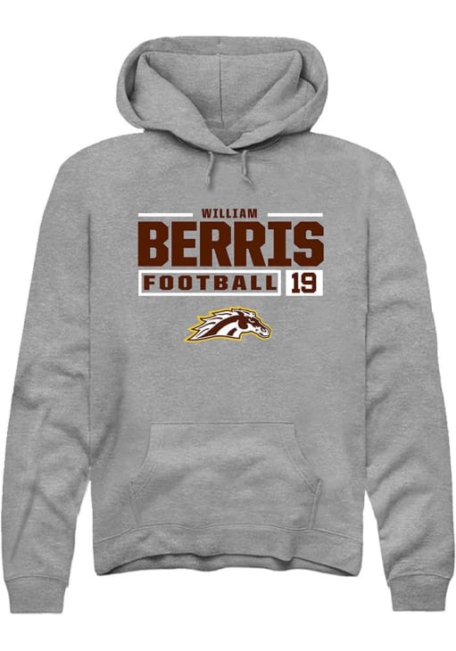 Embrace your Broncos pride and showcase your team spirit with confidence in this Western Michigan Broncos Long Sleeve Hoodie! Stay warm and stylish with the WMU Broncos Mens Grey Football NIL Stacked Box Hooded Sweatshirt. Designed with custom graphic with player's name and number, this Broncos Long Sleeve Hoodie is a must-have for dedicated fans.