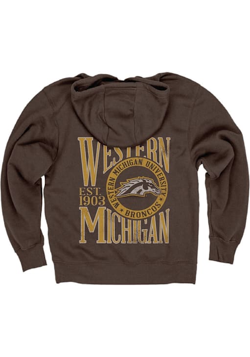 Embrace your Broncos pride and showcase your team spirit with confidence in this Western Michigan Broncos Long Sleeve Hoodie! Stay warm and stylish with the WMU Broncos Mens Brown First Dibs Mascot Hooded Sweatshirt. Designed with screenprint team graphic, this Broncos Long Sleeve Hoodie is a must-have for dedicated fans.