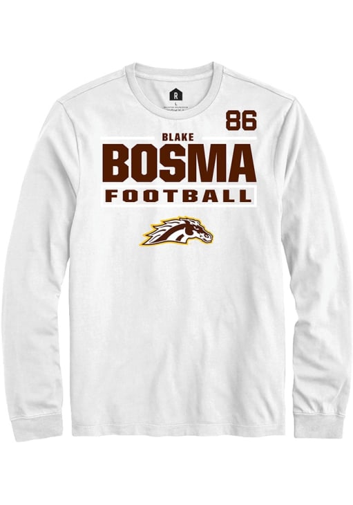 Embrace the spirit of your favorite player in this Western Michigan Broncos White Football NIL Stacked Box Blake Bosma Long Sleeve Player Tee! This Player T Shirt features a NIL graphic, so everyone will know you cheer for WMU Broncos, Blake Bosma! This is the perfect Broncos Player Tee for game days. Go Broncos!