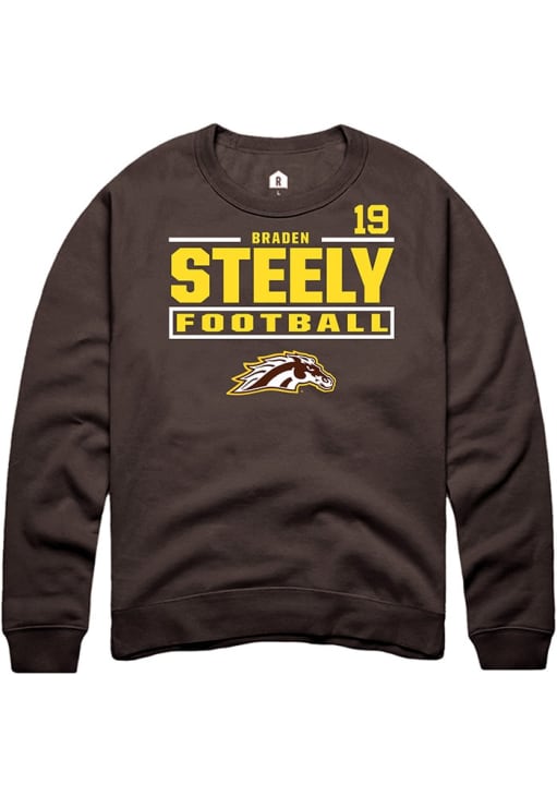 Support your Western Michigan Broncos and favorite Braden Steely in this Western Michigan Broncos Mens Brown Football NIL Stacked Box Player Crew. This Crew Sweatshirt features a NIL graphic, and is sure to stand out in the stadium. Perfect to wear on game day or any day!