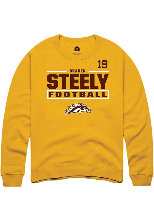 Support your Western Michigan Broncos and favorite Braden Steely in this Western Michigan Broncos Mens Gold Football NIL Stacked Box Player Crew. This Crew Sweatshirt features a NIL graphic, and is sure to stand out in the stadium. Perfect to wear on game day or any day!