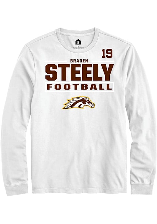 Embrace the spirit of your favorite player in this Western Michigan Broncos White Football NIL Stacked Box Braden Steely Long Sleeve Player Tee! This Player T Shirt features a NIL graphic, so everyone will know you cheer for WMU Broncos, Braden Steely! This is the perfect Broncos Player Tee for game days. Go Broncos!