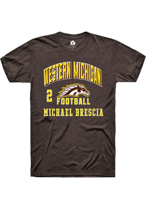 There will be no mistaking your WMU Broncos support when you wear this Western Michigan Broncos Mens Brown Football NIL Arch Logo Short Sleeve! Look great and stand out from the crowd in this Western Michigan Broncos Player T Shirt, which features a NIL graphic.