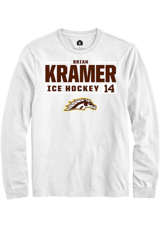 Brian Kramer Rally Mens White Western Michigan Broncos NIL Stacked Box Tee