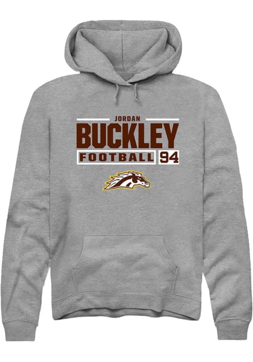 Jordan Buckley Rally Mens Grey Western Michigan Broncos Football NIL Stacked Box Hooded Sweatshirt