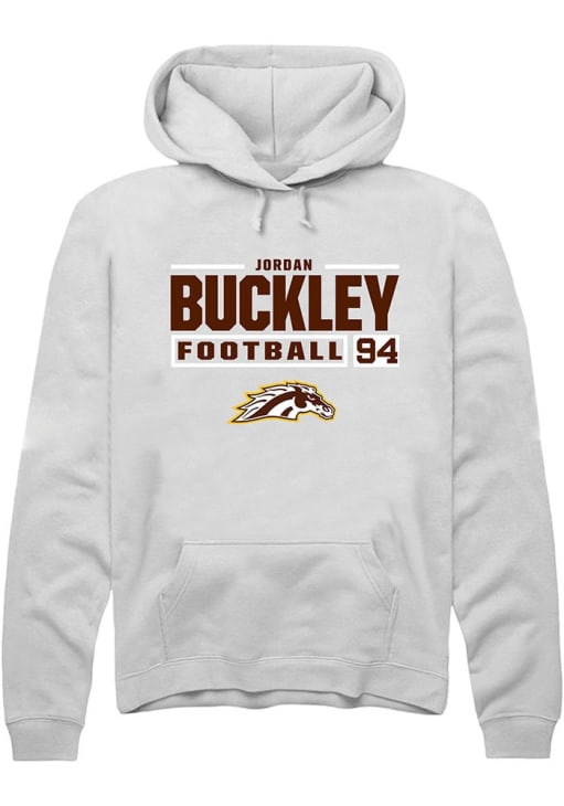 Jordan Buckley Rally Mens White Western Michigan Broncos Football NIL Stacked Box Hooded Sweatshir..