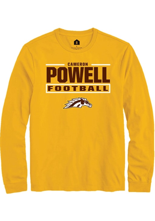 Embrace the spirit of your favorite player in this Western Michigan Broncos Gold Football NIL Stacked Box Cameron Powell Long Sleeve Player Tee! This Player T Shirt features a NIL graphic, so everyone will know you cheer for WMU Broncos, Cameron Powell! This is the perfect Broncos Player Tee for game days. Go Broncos!