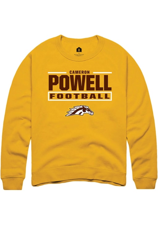 Support your Western Michigan Broncos and favorite Cameron Powell in this Western Michigan Broncos Mens Gold Football NIL Stacked Box Player Crew. This Crew Sweatshirt features a NIL graphic, and is sure to stand out in the stadium. Perfect to wear on game day or any day!