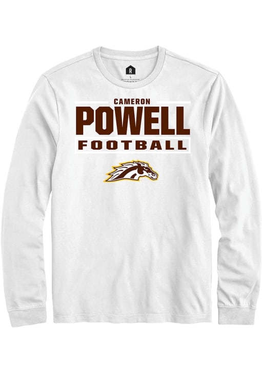 Embrace the spirit of your favorite player in this Western Michigan Broncos White Football NIL Stacked Box Cameron Powell Long Sleeve Player Tee! This Player T Shirt features a NIL graphic, so everyone will know you cheer for WMU Broncos, Cameron Powell! This is the perfect Broncos Player Tee for game days. Go Broncos!