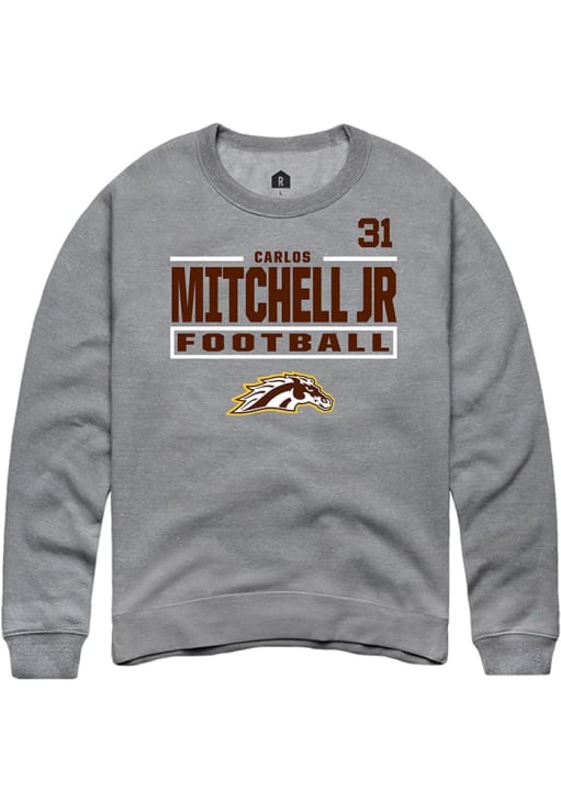 Support your Western Michigan Broncos and favorite Carlos Mitchell Jr in this Western Michigan Broncos Mens Grey Football NIL Stacked Box Player Crew. This Crew Sweatshirt features a NIL graphic, and is sure to stand out in the stadium. Perfect to wear on game day or any day!