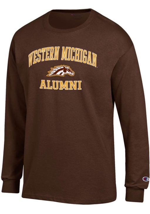 Show your Western Michigan Broncos spirit in this WMU Broncos Brown T Shirt! This WMU Broncos Logo Alumni Jersey Long Sleeve T Shirt makes a great layer for cooler nights cheering on the Broncos. Featuring a printed team graphic on front chest, this Western Michigan Broncos Long Sleeve Tee is an essential addition for every fan. Go Broncos!