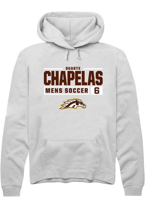 Duarte Chapelas Rally Mens White Western Michigan Broncos NIL Stacked Box Hooded Sweatshirt