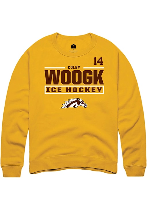 Support your Western Michigan Broncos and favorite Colby Woogk in this Western Michigan Broncos Mens Gold NIL Stacked Box Player Crew. This Crew Sweatshirt features a NIL graphic, and is sure to stand out in the stadium. Perfect to wear on game day or any day!