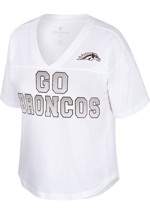 Display your team spirit with this remarkable Western Michigan Broncos White Shiz Short Sleeve T-Shirt! The WMU Broncos Short Sleeve Tee showcases a foil print team name and logo at center chest that truly sets it apart. Stand out from the crowd and proudly declare your allegiance to the Broncos with this exceptional White WMU Broncos T-Shirt. Go Broncos!
