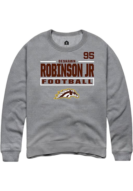 Support your Western Michigan Broncos and favorite DeShawn Robinson Jr in this Western Michigan Broncos Mens Grey Football NIL Stacked Box Player Crew. This Crew Sweatshirt features a NIL graphic, and is sure to stand out in the stadium. Perfect to wear on game day or any day!