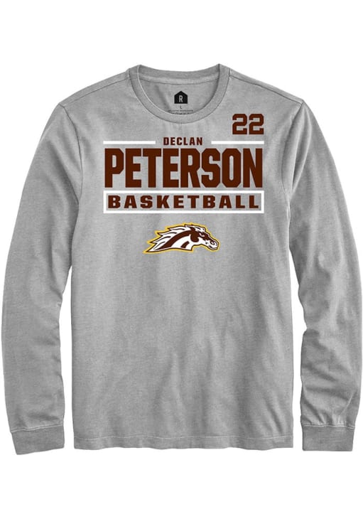 Embrace the spirit of your favorite player in this Western Michigan Broncos Grey NIL Stacked Box Declan Peterson Long Sleeve Player Tee! This Player T Shirt features a NIL graphic, so everyone will know you cheer for WMU Broncos, Declan Peterson! This is the perfect Broncos Player Tee for game days. Go Broncos!