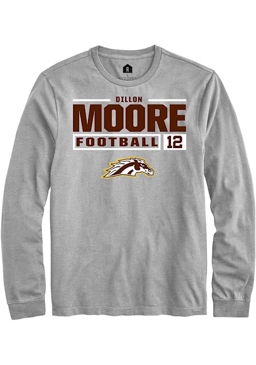 Dillon Moore Rally Mens Grey Western Michigan Broncos Football NIL Stacked Box Tee