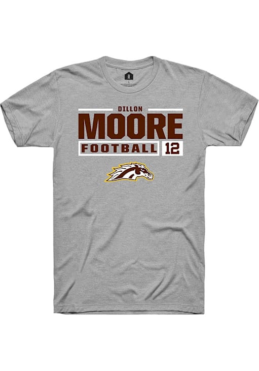 Dillon Moore Grey Western Michigan Broncos Football NIL Stacked Box Short Sleeve T Shirt