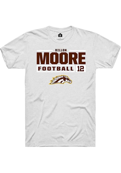 Dillon Moore White Western Michigan Broncos Football NIL Stacked Box Short Sleeve T Shirt