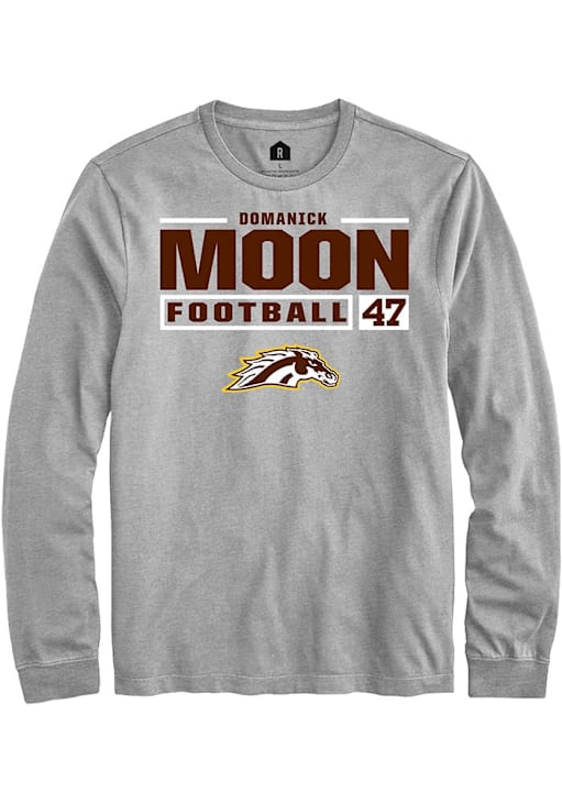 Domanick Moon Rally Mens Grey Western Michigan Broncos Football NIL Stacked Box Tee