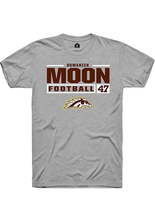Domanick Moon Grey Western Michigan Broncos Football NIL Stacked Box Short Sleeve T Shirt