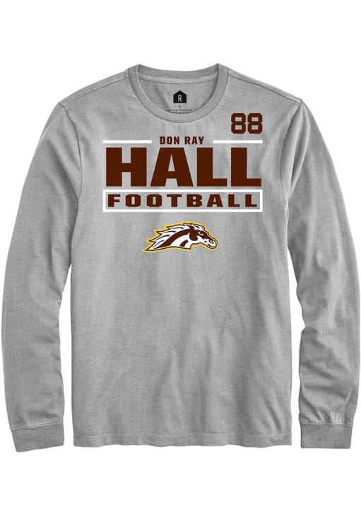 Embrace the spirit of your favorite player in this Western Michigan Broncos Grey Football NIL Stacked Box Don Ray Hall Long Sleeve Player Tee! This Player T Shirt features a NIL graphic, so everyone will know you cheer for WMU Broncos, Don Ray Hall! This is the perfect Broncos Player Tee for game days. Go Broncos!