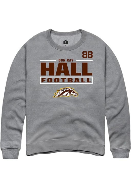 Support your Western Michigan Broncos and favorite Don Ray Hall in this Western Michigan Broncos Mens Grey Football NIL Stacked Box Player Crew. This Crew Sweatshirt features a NIL graphic, and is sure to stand out in the stadium. Perfect to wear on game day or any day!