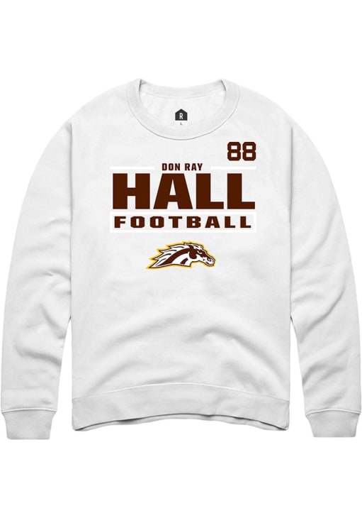 Support your Western Michigan Broncos and favorite Don Ray Hall in this Western Michigan Broncos Mens White Football NIL Stacked Box Player Crew. This Crew Sweatshirt features a NIL graphic, and is sure to stand out in the stadium. Perfect to wear on game day or any day!