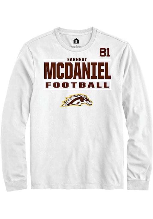 Embrace the spirit of your favorite player in this Western Michigan Broncos White Football NIL Stacked Box Earnest McDaniel Long Sleeve Player Tee! This Player T Shirt features a NIL graphic, so everyone will know you cheer for WMU Broncos, Earnest McDaniel! This is the perfect Broncos Player Tee for game days. Go Broncos!