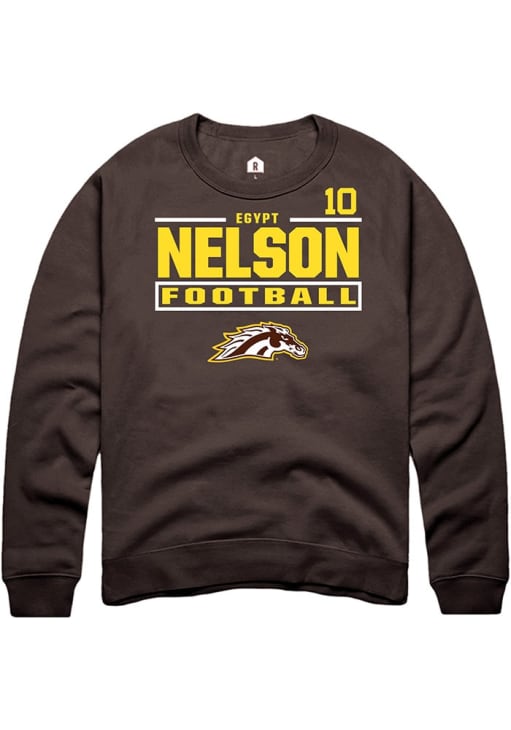 Support your Western Michigan Broncos and favorite Egypt Nelson in this Western Michigan Broncos Mens Brown Football NIL Stacked Box Player Crew. This Crew Sweatshirt features a NIL graphic, and is sure to stand out in the stadium. Perfect to wear on game day or any day!