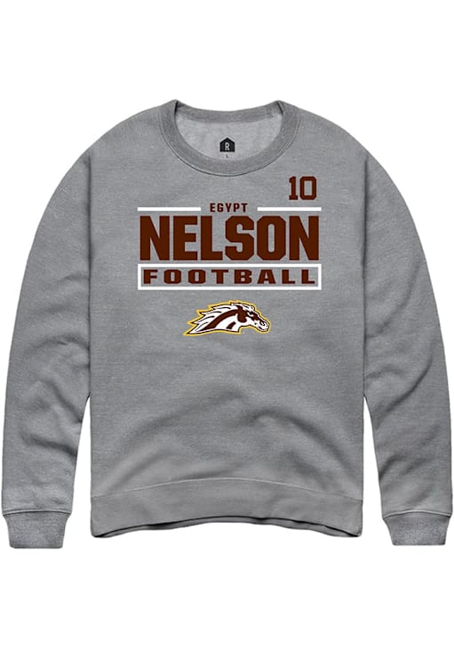 Support your Western Michigan Broncos and favorite Egypt Nelson in this Western Michigan Broncos Mens Grey Football NIL Stacked Box Player Crew. This Crew Sweatshirt features a NIL graphic, and is sure to stand out in the stadium. Perfect to wear on game day or any day!