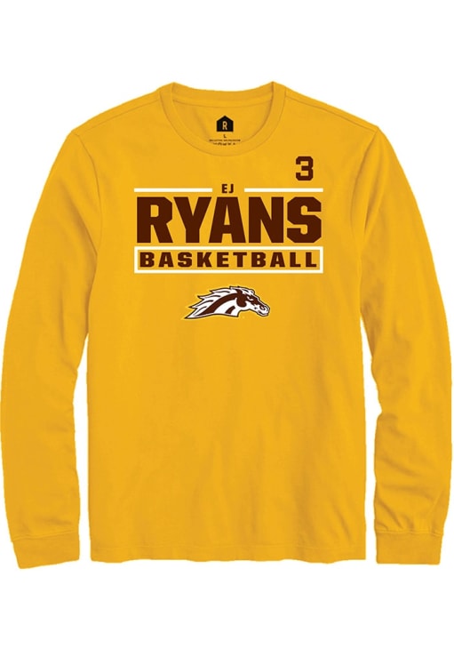Embrace the spirit of your favorite player in this Western Michigan Broncos Gold NIL Stacked Box Ej Ryans Long Sleeve Player Tee! This Player T Shirt features a NIL graphic, so everyone will know you cheer for WMU Broncos, Ej Ryans! This is the perfect Broncos Player Tee for game days. Go Broncos!