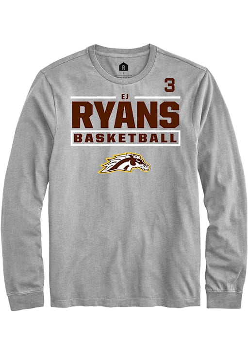 Embrace the spirit of your favorite player in this Western Michigan Broncos Grey NIL Stacked Box Ej Ryans Long Sleeve Player Tee! This Player T Shirt features a NIL graphic, so everyone will know you cheer for WMU Broncos, Ej Ryans! This is the perfect Broncos Player Tee for game days. Go Broncos!