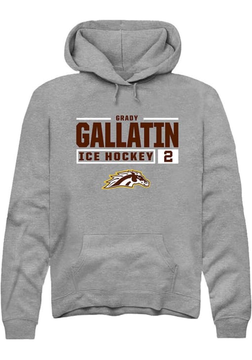 Grady Gallatin Rally Mens Grey Western Michigan Broncos NIL Stacked Box Hooded Sweatshirt