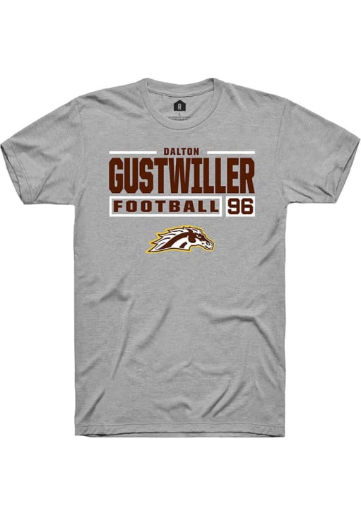Dalton Gustwiller Grey Western Michigan Broncos Football NIL Stacked Box Short Sleeve T Shirt