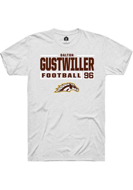 Dalton Gustwiller White Western Michigan Broncos Football NIL Stacked Box Short Sleeve T Shirt
