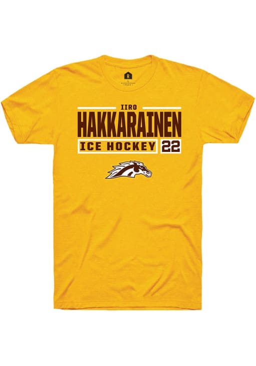 Iiro Hakkarainen Gold Western Michigan Broncos NIL Stacked Box Short Sleeve T Shirt