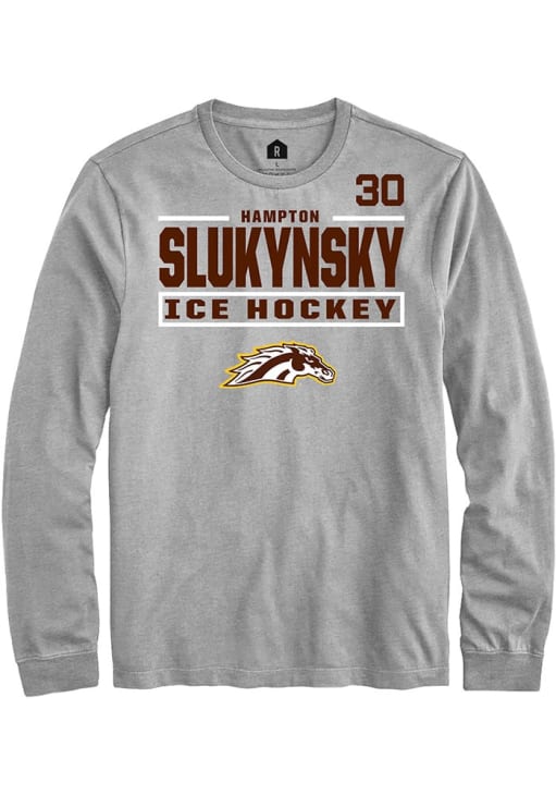 Embrace the spirit of your favorite player in this Western Michigan Broncos Grey NIL Stacked Box Hampton Slukynsky Long Sleeve Player Tee! This Player T Shirt features a NIL graphic, so everyone will know you cheer for WMU Broncos, Hampton Slukynsky! This is the perfect Broncos Player Tee for game days. Go Broncos!