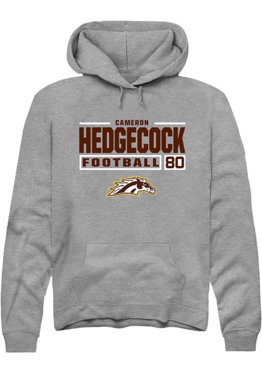 Cameron Hedgecock Rally Mens Grey Western Michigan Broncos Football NIL Stacked Box Hooded Sweatsh..