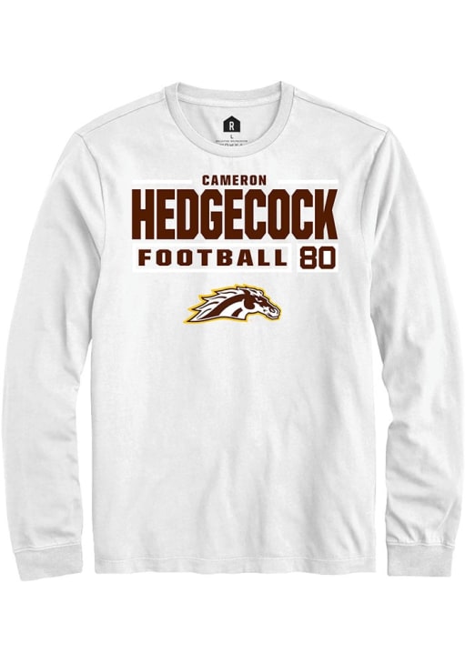 Show your Western Michigan Broncos spirit in this WMU Broncos White T Shirt! This WMU Broncos Football NIL Stacked Box Long Sleeve T Shirt makes a great layer for cooler nights cheering on the Broncos. Featuring a custom graphic with player's name and number, this Western Michigan Broncos Long Sleeve Tee is an essential addition for every fan. Go Broncos!