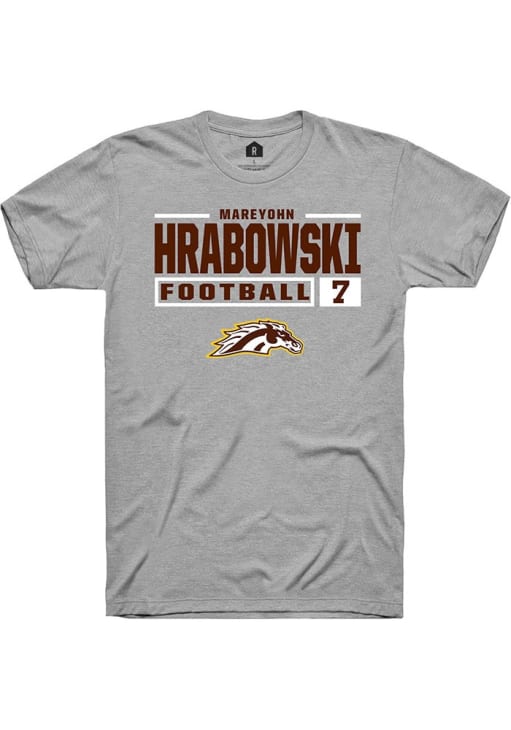 Mareyohn Hrabowski Grey Western Michigan Broncos Football NIL Stacked Box Short Sleeve T Shirt