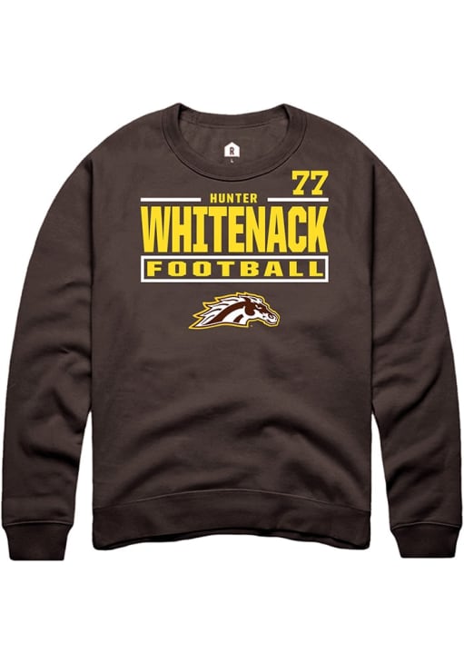Support your Western Michigan Broncos and favorite Hunter Whitenack in this Western Michigan Broncos Mens Brown Football NIL Stacked Box Player Crew. This Crew Sweatshirt features a NIL graphic, and is sure to stand out in the stadium. Perfect to wear on game day or any day!