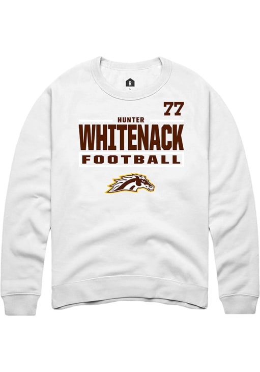Support your Western Michigan Broncos and favorite Hunter Whitenack in this Western Michigan Broncos Mens White Football NIL Stacked Box Player Crew. This Crew Sweatshirt features a NIL graphic, and is sure to stand out in the stadium. Perfect to wear on game day or any day!