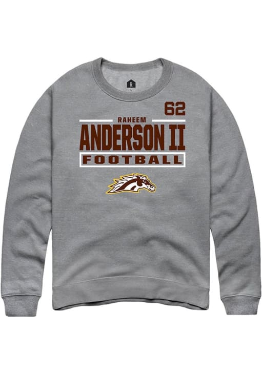 Gear up for the ultimate game day experience with this remarkable Western Michigan BroncosMens Grey Football NIL Stacked Box Crew Sweatshirt! Designed with the true fan in mind, this Broncos Long Sleeve Crew Sweatshirt features a custom graphic with player's name and number. Stay warm and comfortable with this Mens WMU Broncos Broncos Crew Sweatshirt.