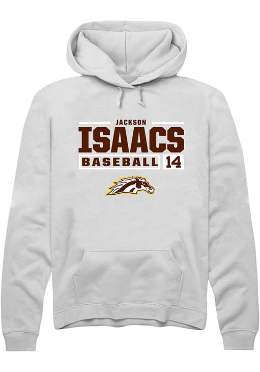 Jackson Isaacs Rally Mens White Western Michigan Broncos NIL Stacked Box Hooded Sweatshirt